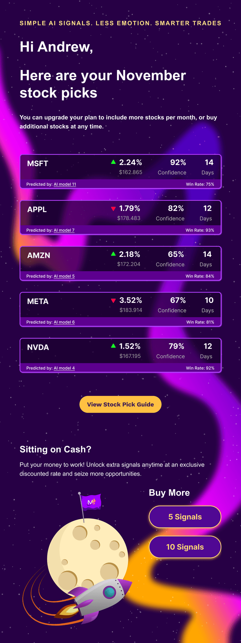 AI-driven stock signals backed by predictive analytics and deep market data - delivering only the best to you.